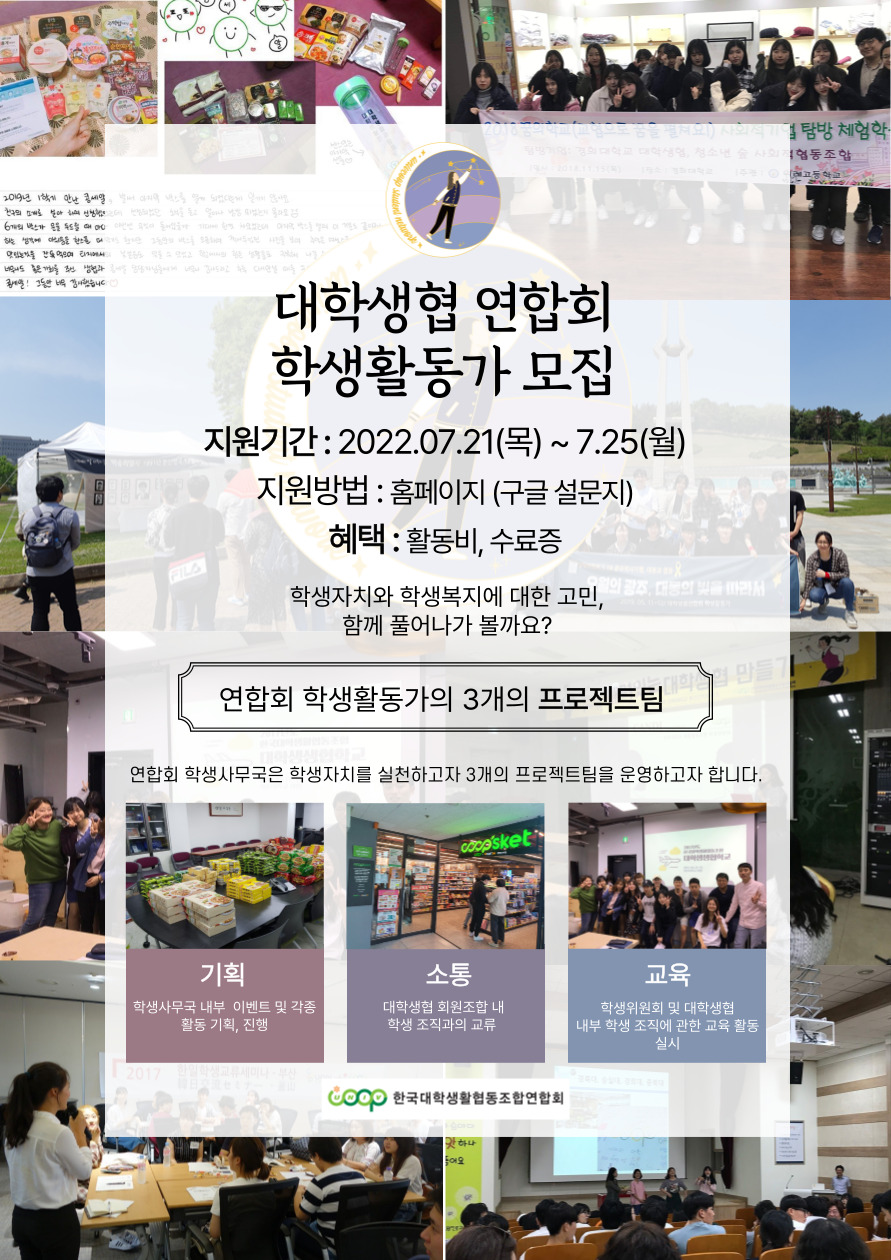 ※대학생협연합회 사무실(서울)에 올 수 있는 대학생들만 모집합니다.