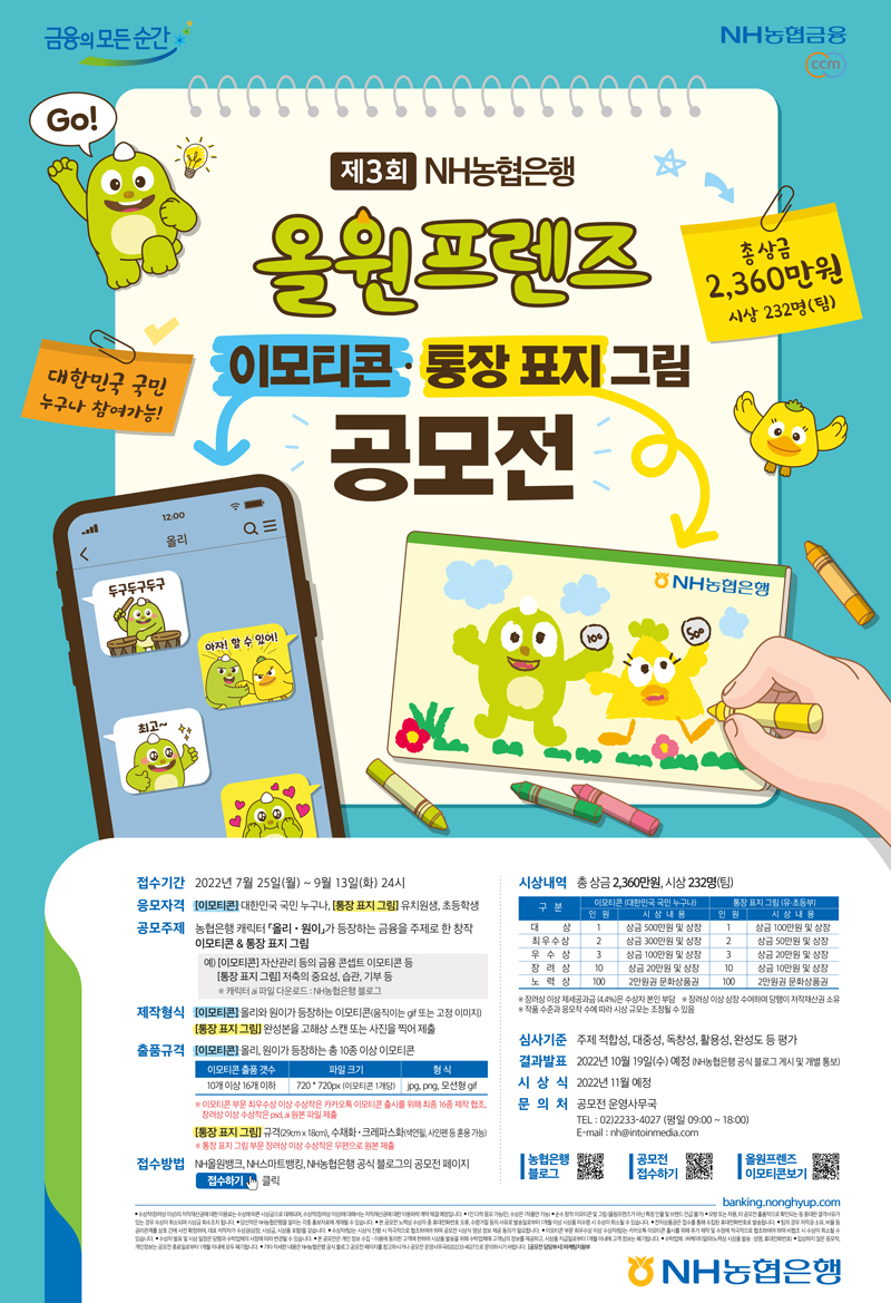 제3회 NH농협은행 올원프렌즈 이모티콘ㆍ통장 표지 그림 공모전