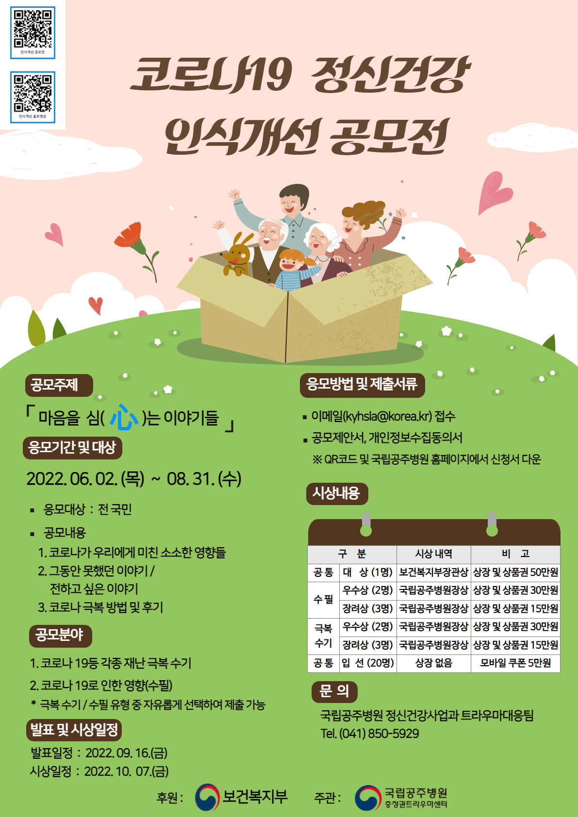 (QR코드 및 국립공주병원 홈페이지(소식알림>자료실>47번 게시글)에서 신청서 다운)