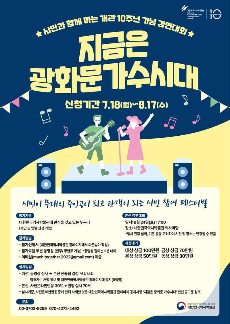 * 심사기준, 사전온라인반응 등에 관해 자세한 것은 대한민국역사박물관 홈페이지 공지사항 '지금은 광화문 가수시대' 관련 공고문 참조