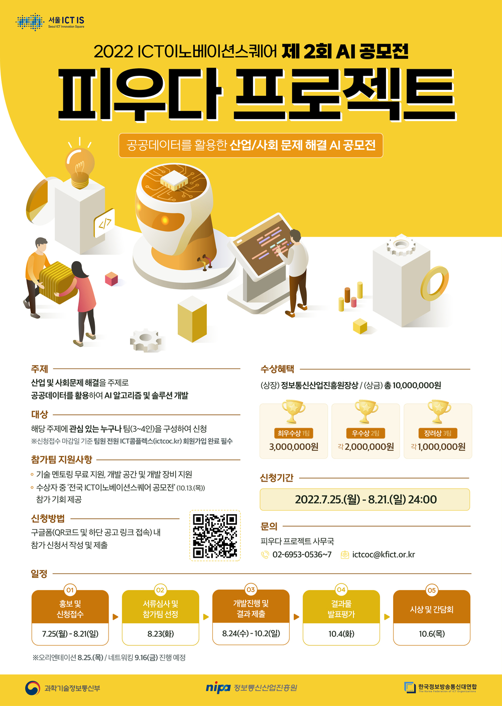 - 장려상 3팀 : 각 1,000,000원 (정보통신산업진흥원장상)
