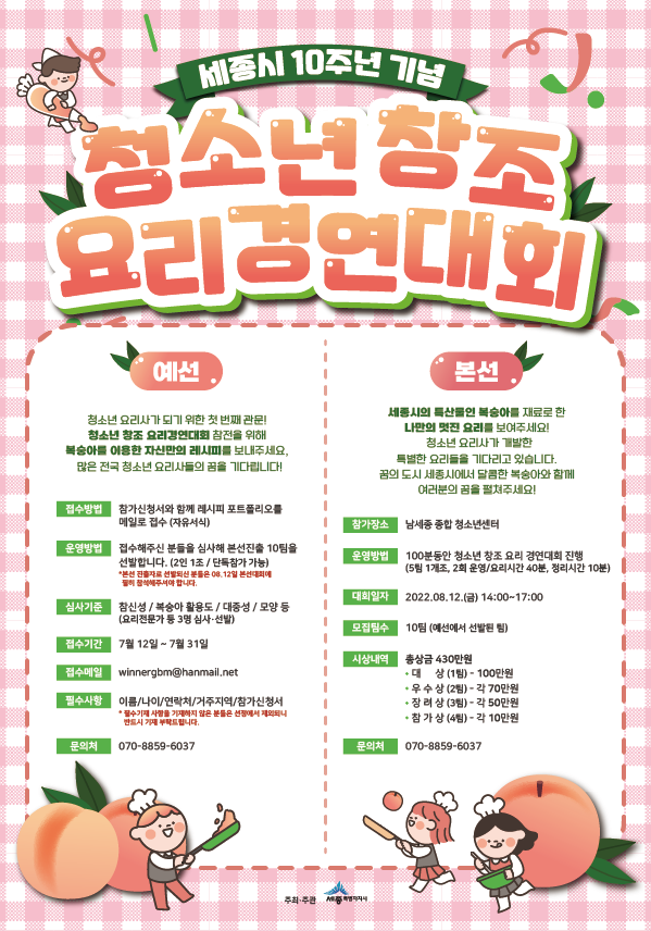 심사 기준 : 참신성 / 복숭아 활용도 / 대중성 / 모양 등