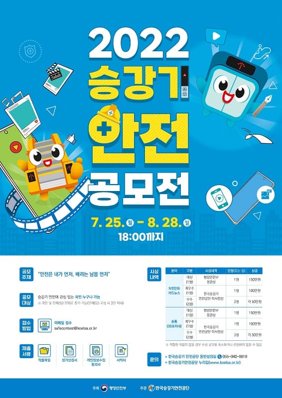 - 우수 2명(또는 팀) : 한국승강기안전공단 이사장상, 50만원