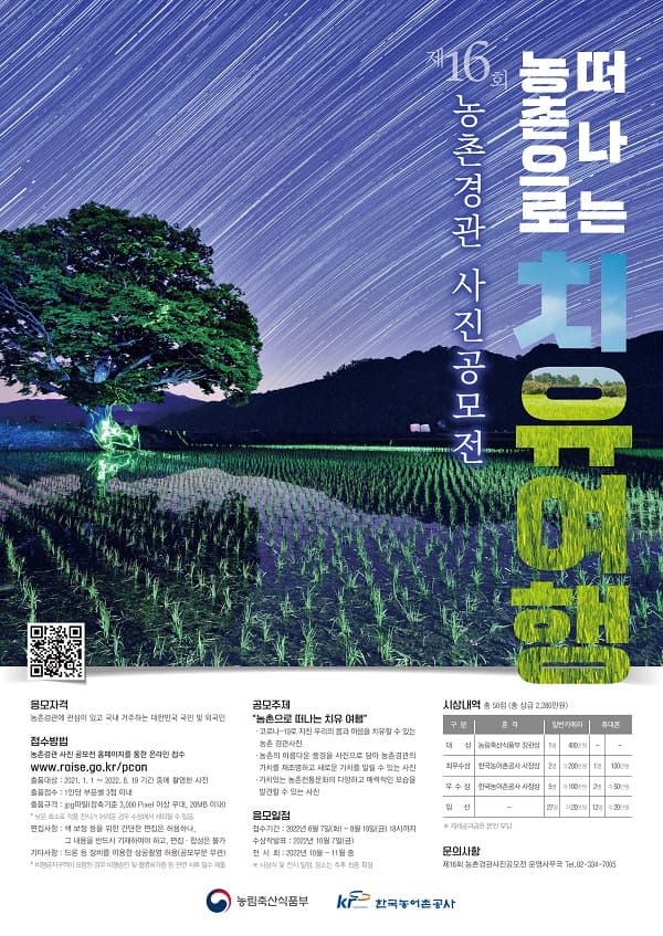 - 농촌의 아름다운 풍경을 사진으로 담아 농촌경관의 가치를 재조명하고 새로운 가치를 알릴 수 있는 사진