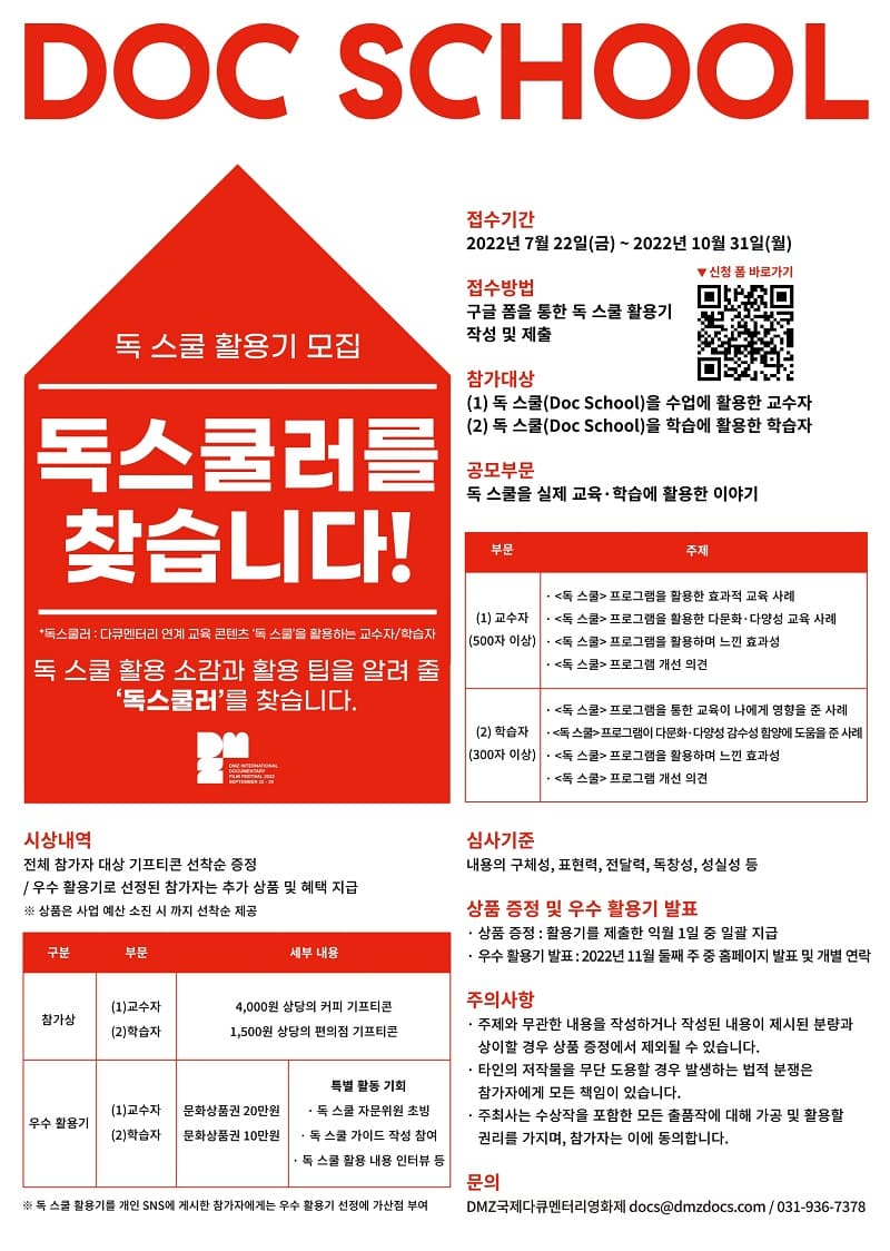※ 독 스쿨 활용기를 개인 SNS에 게시한 참가자에게는 우수 활용기 선정에 가산점 부여 | |||