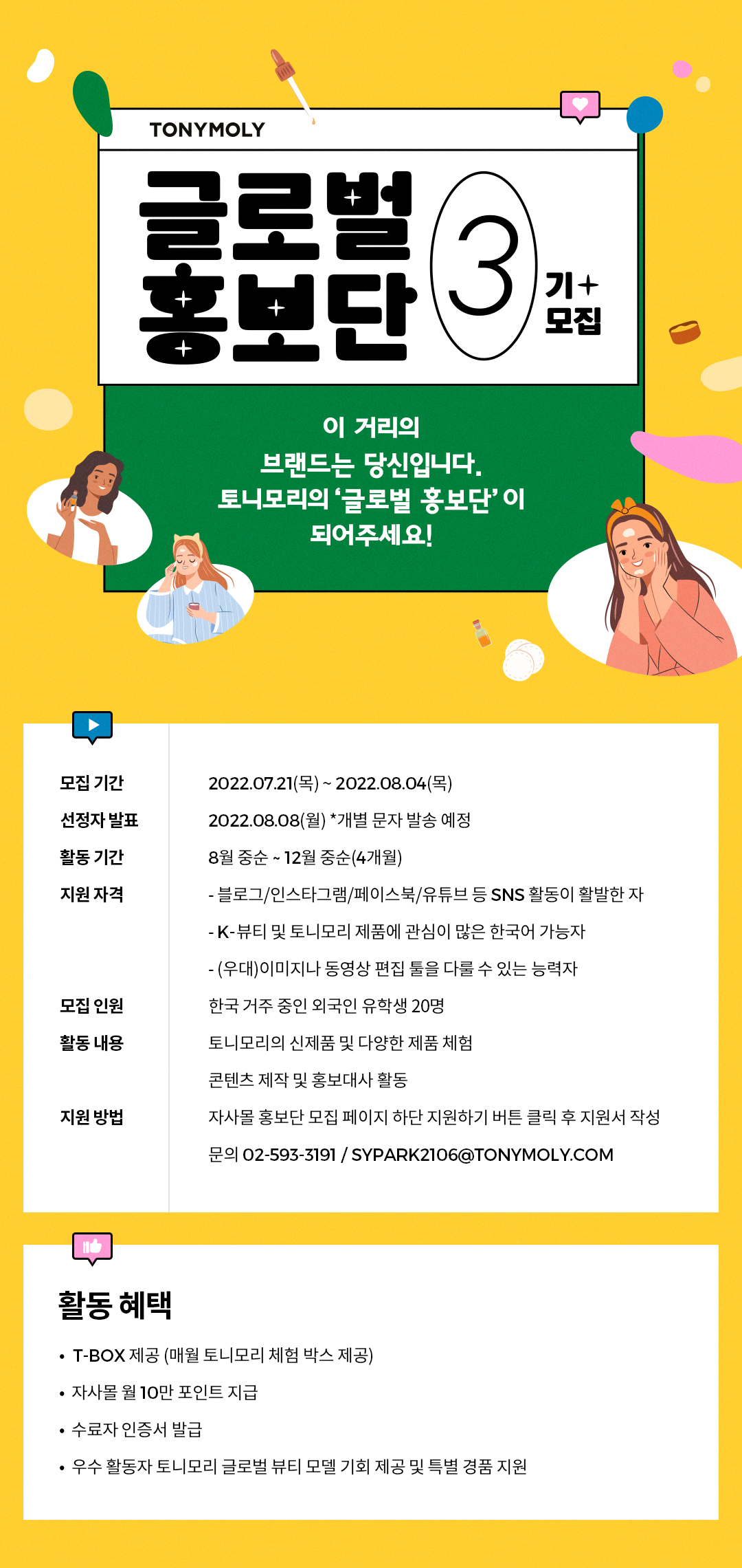 📣토니모리 글로벌 홍보단 3기 모집📣