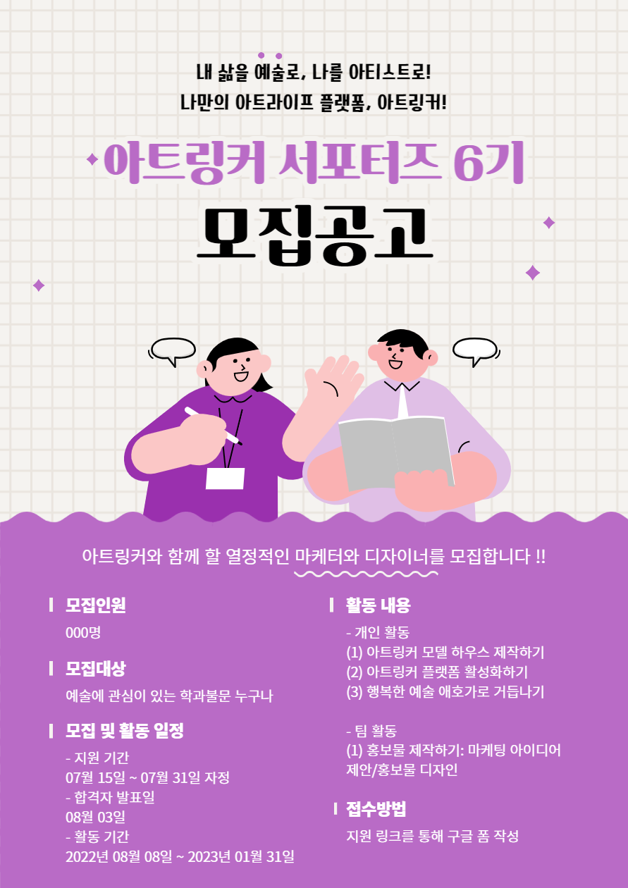 💜 아트링커 (ARTSLINKER) 6기 서포터즈 모집💜