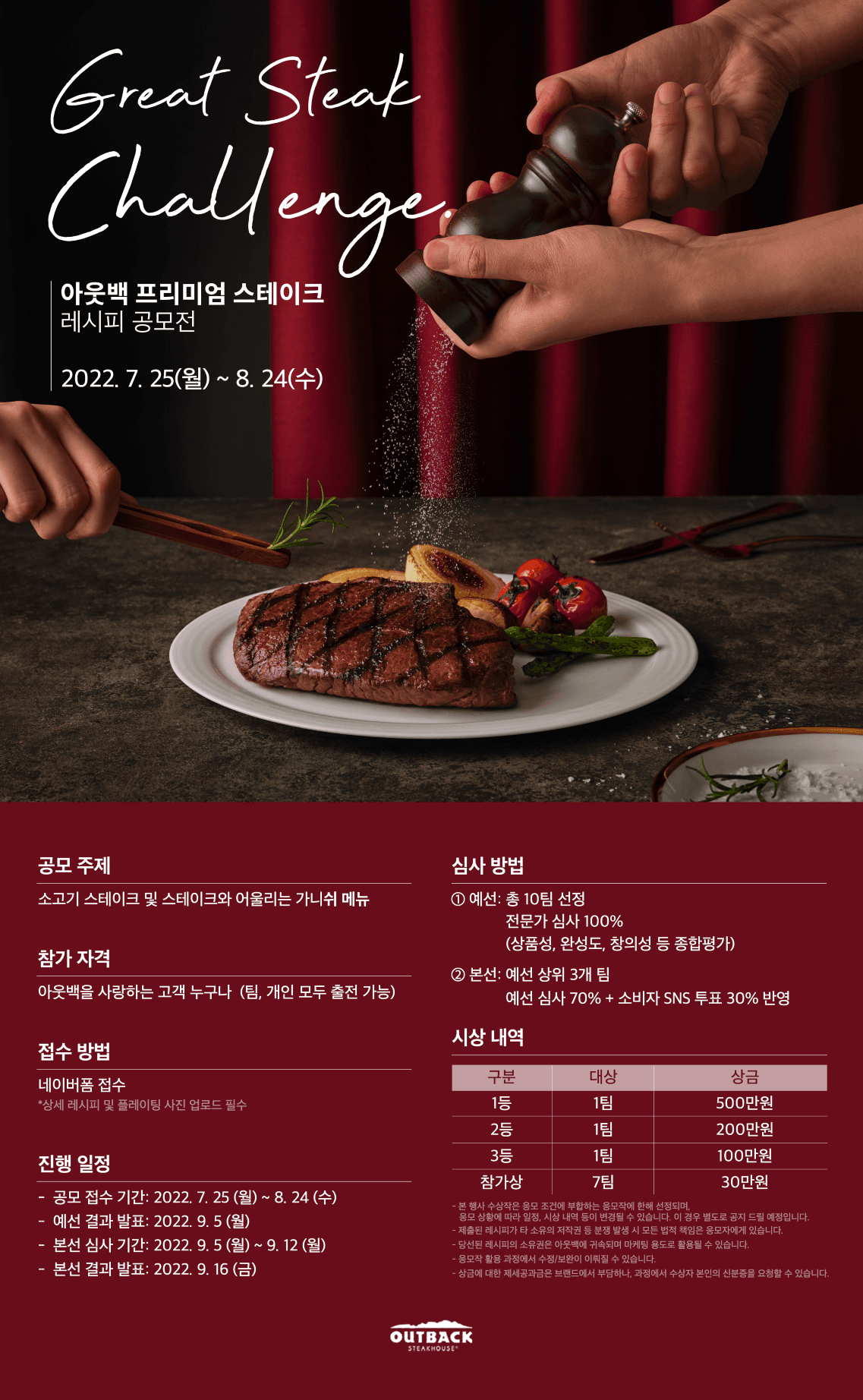 [아웃백] <GREAT STEAK Challenge> 아웃백 프리미엄 스테이크 레시피 공모전(~8/24)