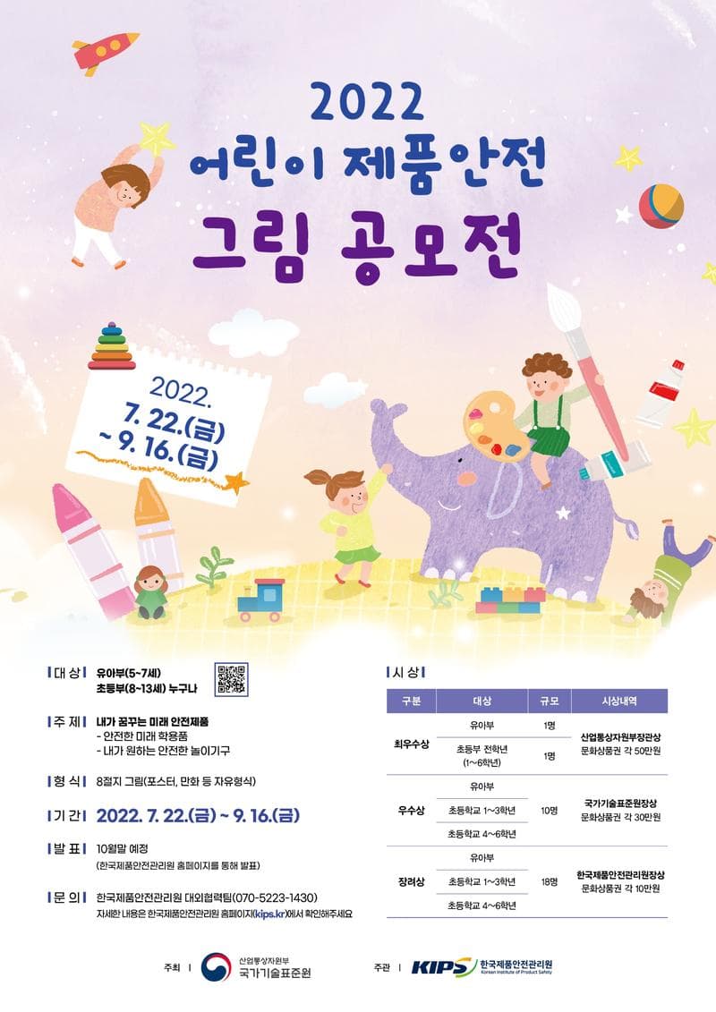 - 한국제품안전관리원( www.kips.kr ) 홈페이지에서 온라인 접수 > '2022년 어린이 제품안전 그림 공모전' 게시물 확인