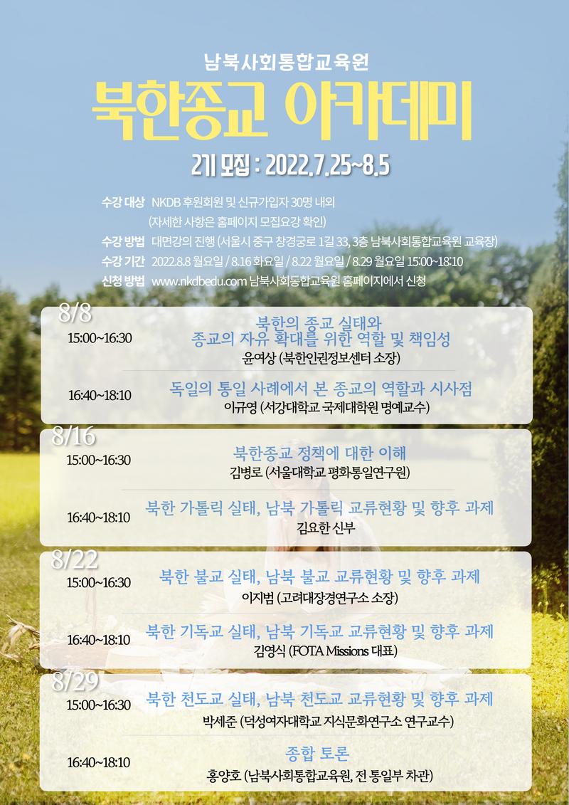* 교육장소 : NKDB 남북사회통합교육원 교육장(서울시 중구 창경궁로 1길 33, 3층)