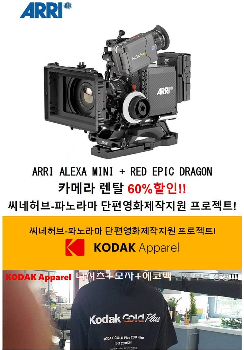 ARRI ALEXA MINI + RED EPIC DRAGON 카메라 렌탈료 최대 60% 할인 이벤트를 실시합니다.