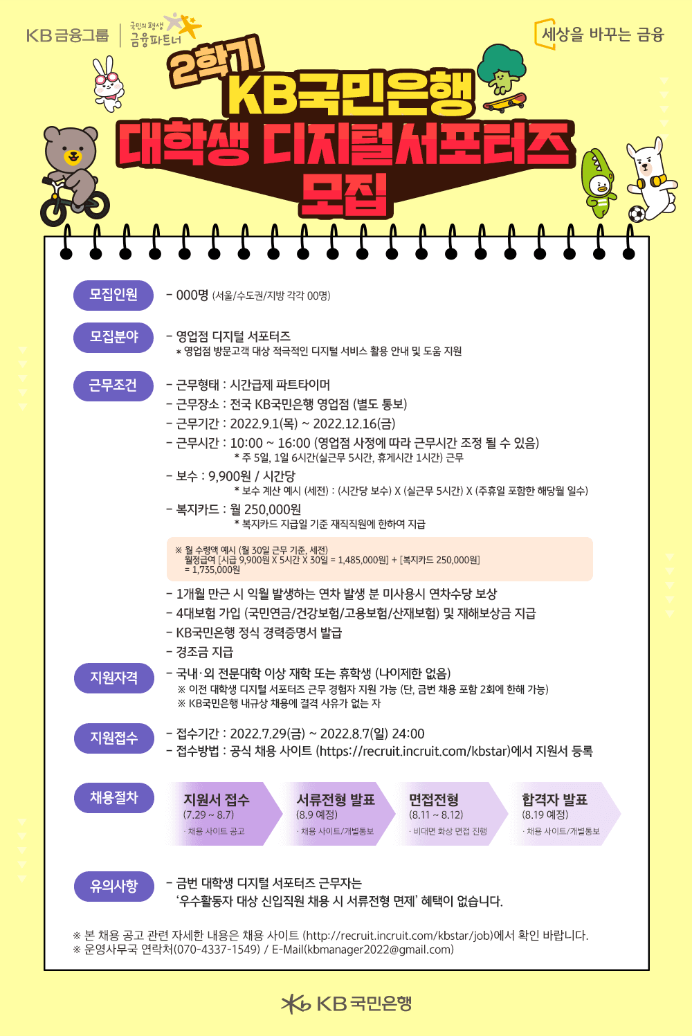 2022년 2학기 KB국민은행 대학생 「디지털 서포터즈」채용