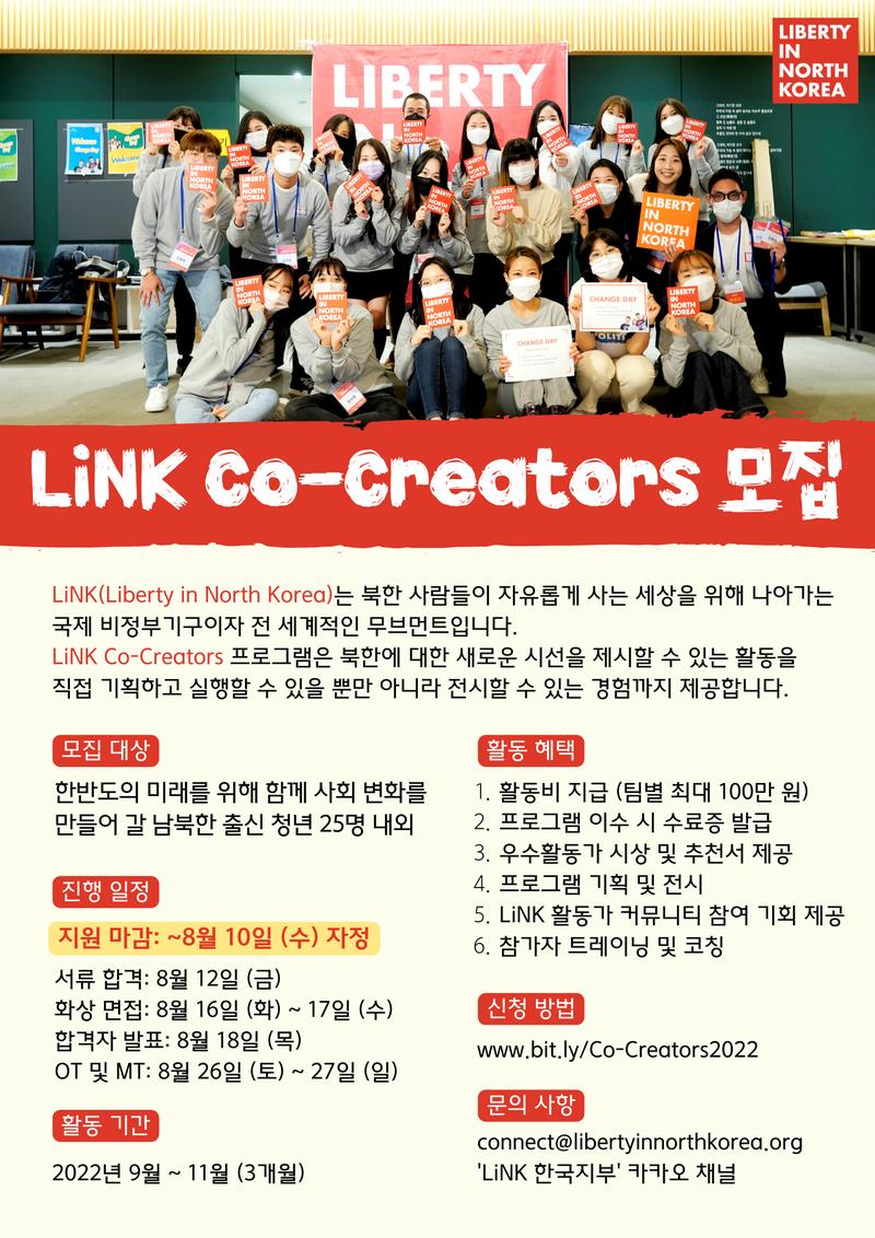 📍관련 문의: connect@libertyinnorthkorea.org 혹은 ‘LiNK 한국지부’ 카카오 채널