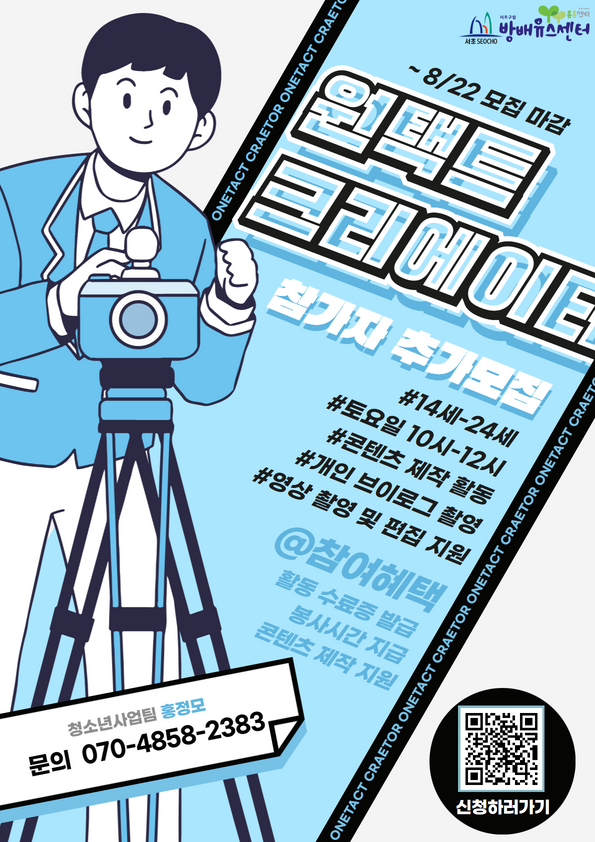 방배유스센터에서 운영하는 원택트 크리에이터 활동 안 하고 갈거야~?