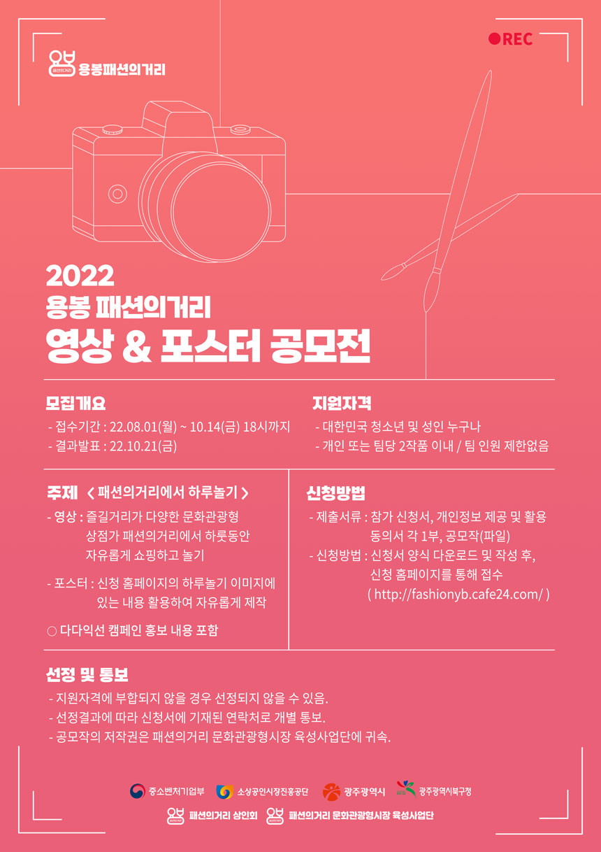 용봉 패션의거리 일대의 소상공인들의 어려움을 최소화하고 브랜드 인지도를 확산하기 위해 공모전을 개최하게 되었습니다!