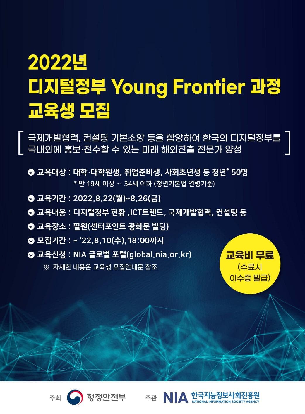 이에 디지털정부 Young Frontier 과정의 교육생을 다음과 같이 모집하오니,