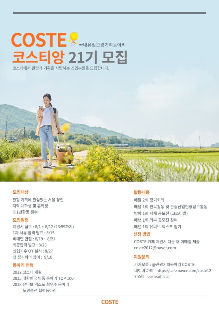 국내유일 관광기획동아리 COSTE에서 21기 신입기수를 모집합니다!