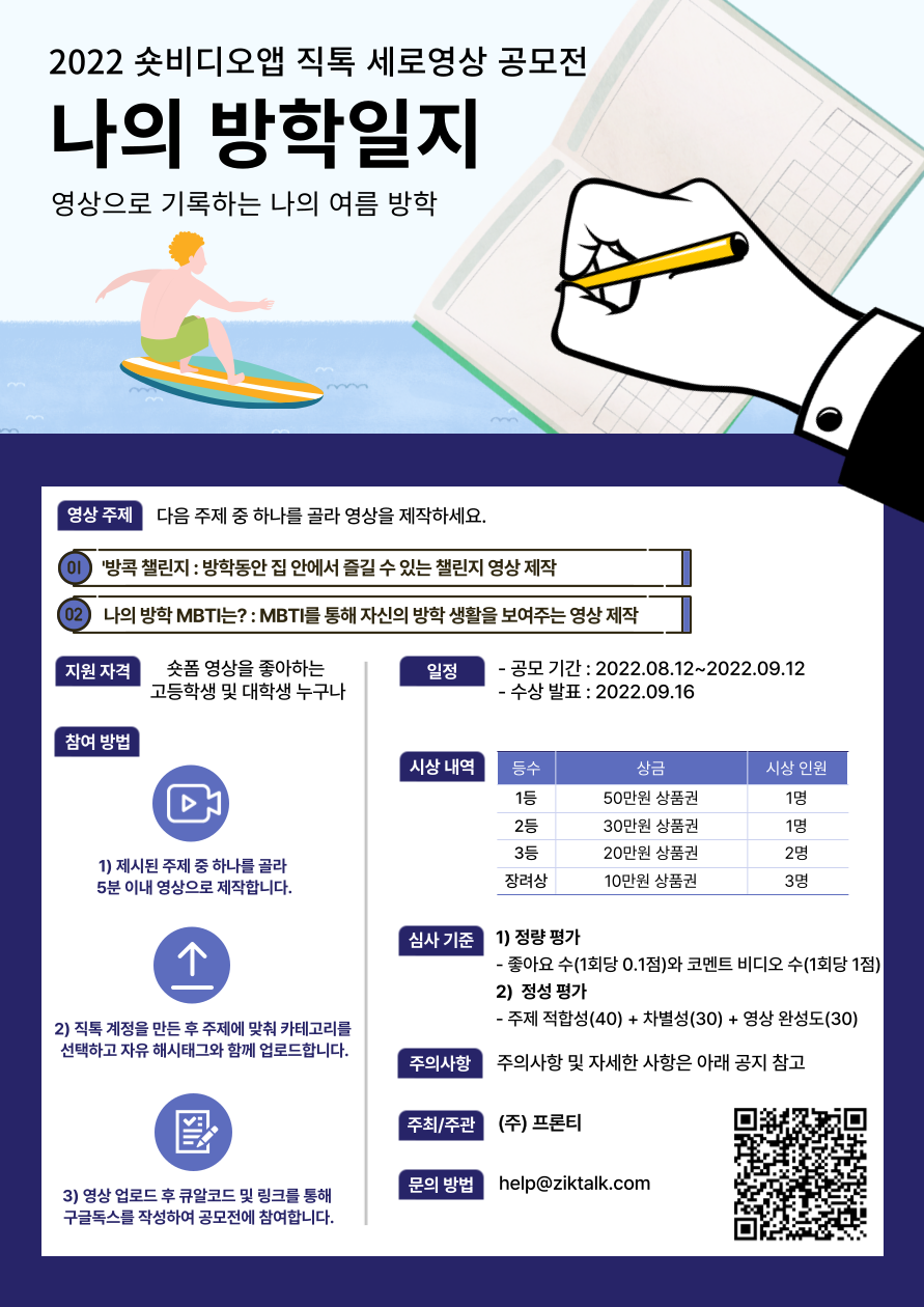2022 숏비디오앱 직톡 세로 영상 공모전 “나의 방학일지”