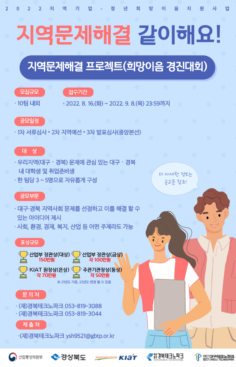 참가대상: 우리지역 문제에 관심이 있는 대구/경북 내 대학생 및 취업준비생