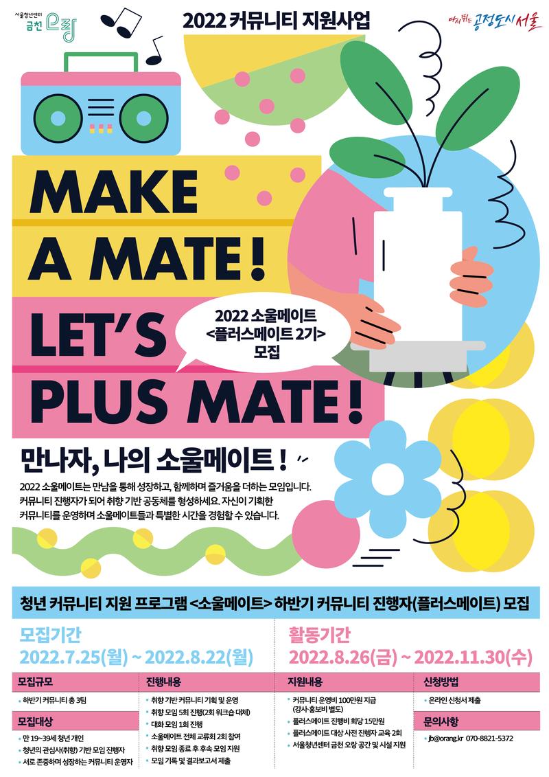 2022 소울메이트 하반기 커뮤니티 진행자 <플러스메이트 2기> 모집