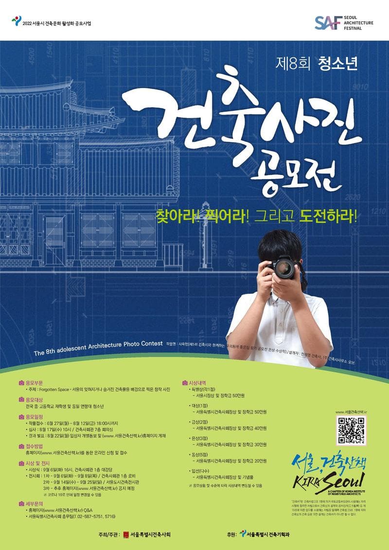 - 최종 결과 발표 : 8월 22일(월) 입상자 개별통보 및 홈페이지(www.서울건축산책.kr) 게재
