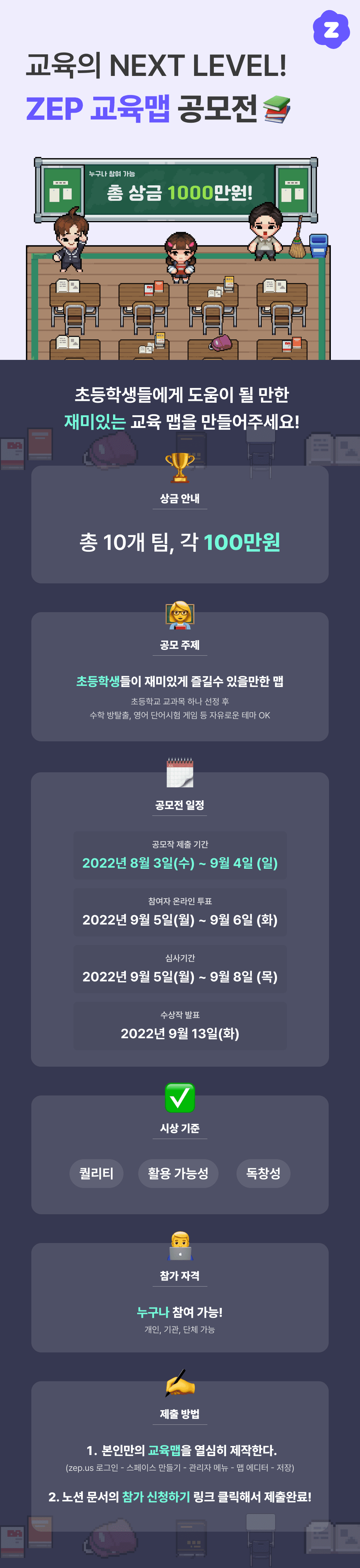 교육의 NEXT LEVEL! 초등학생들에게 도움이 될 만한 “재미있는” 교육 맵을 만들어주세요.