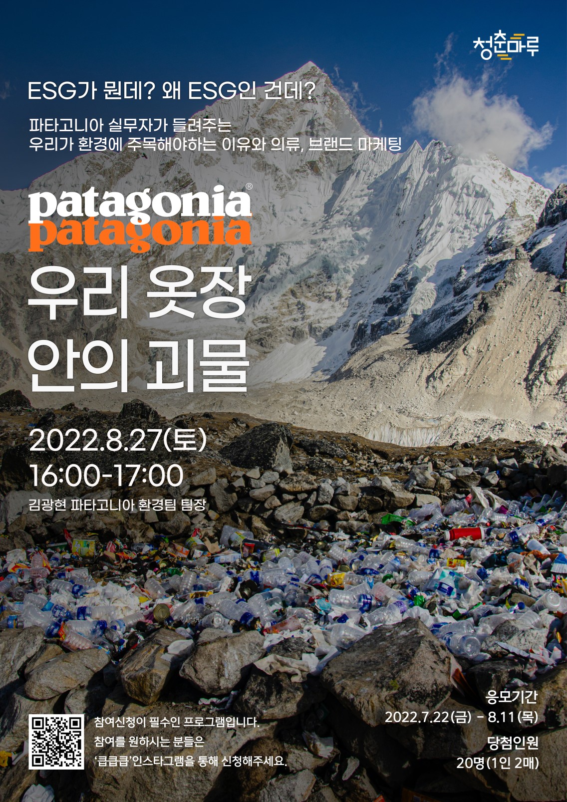 김광현 파타고니아 팀장의 ESG, 브랜딩 이야기가 궁금하다면 8월 청춘마루에서 만나보세요!