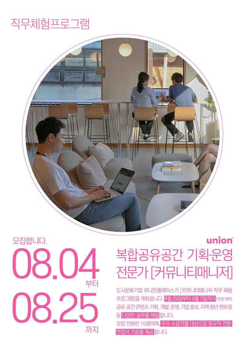 < 복합공유공간 유니언타운 '커뮤니티매니저' 직무체험 프로그램 참가자 모집 >