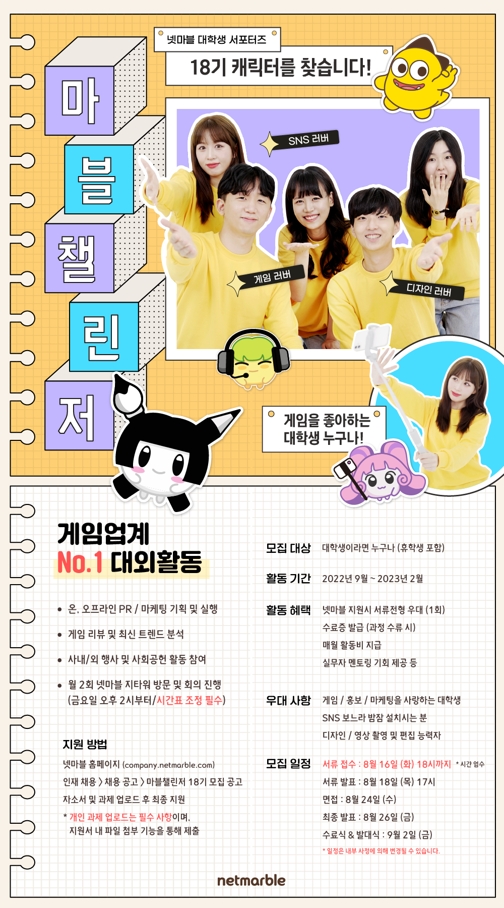 넷마블 대학생 서포터즈 마블챌린저 18기 모집
