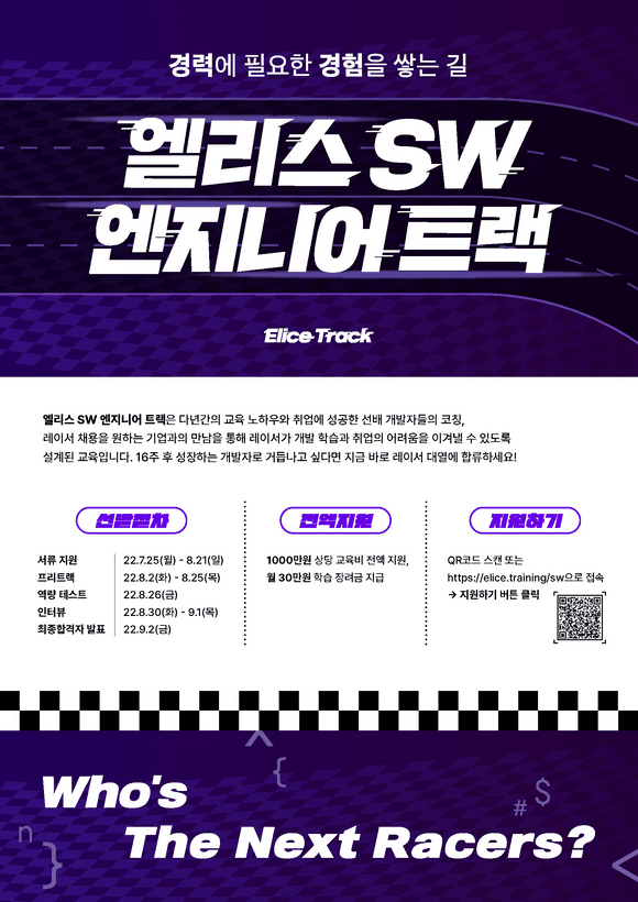 [전액 무료] 실무 개발 프로젝트부터 채용 매칭까지, 경력에 필요한 경험을 쌓는 길! 엘리스 SW 엔지니어 트랙 3기 모집