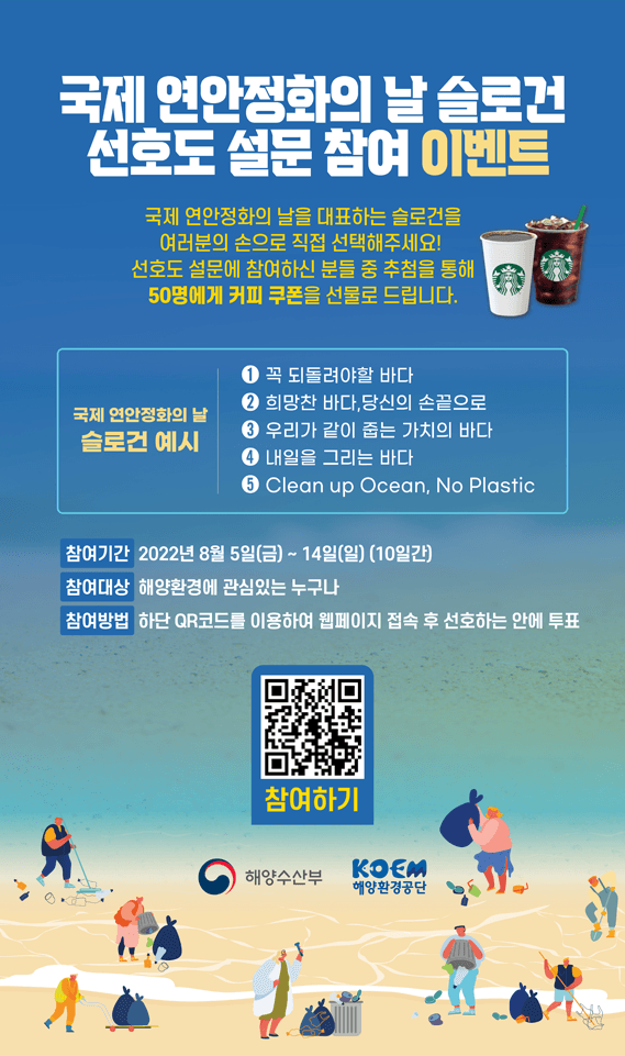 2022 국제 연안정화의 날 슬로건 선호도 설문 참여 이벤트 (~8월 14일)