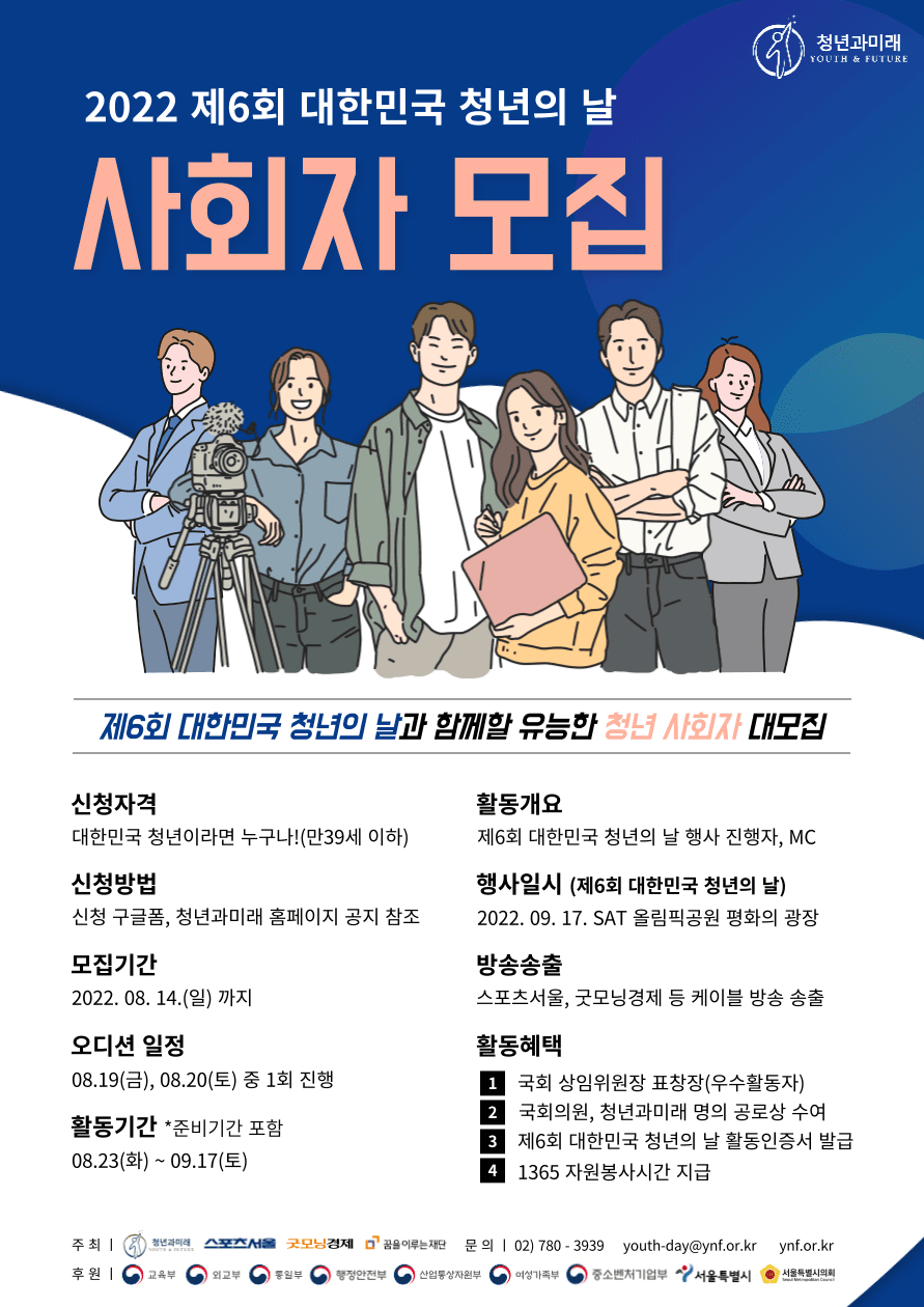 💙제6회 대한민국 청년의 날 사회자 모집에 많은 지원 바랍니다💙