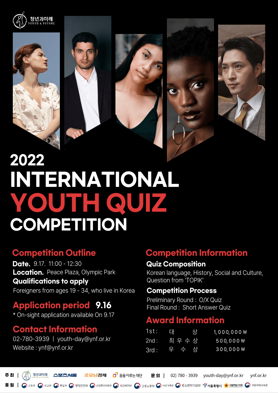 - Qualifications to apply: Foreigners from ages 19 - 34, who live in Korea