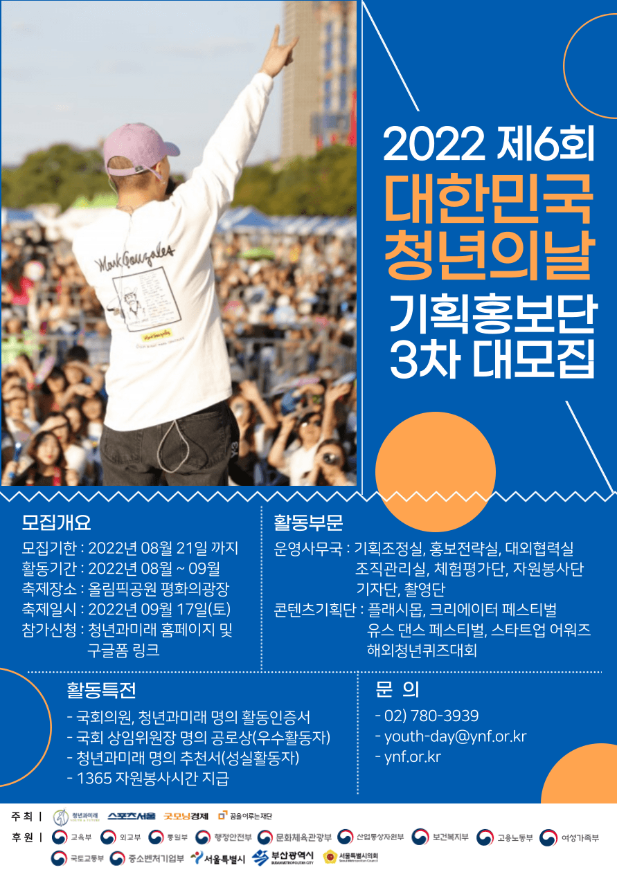 💙2022 제6회 대한민국 청년의 날 기획홍보단 3차 대모집💙