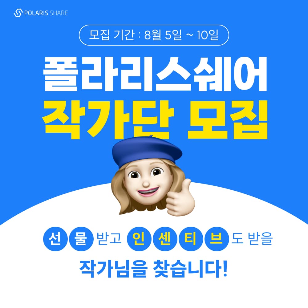 💙글도 쓰고 선물도 받으며 폴라리스쉐어와 함께 작가의 꿈을 펼쳐보세요💙