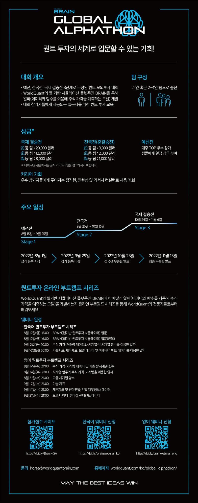 하기의 대회 주요 일정과 WorldQuant BRAIN 소개문도 참고하시기 바랍니다.