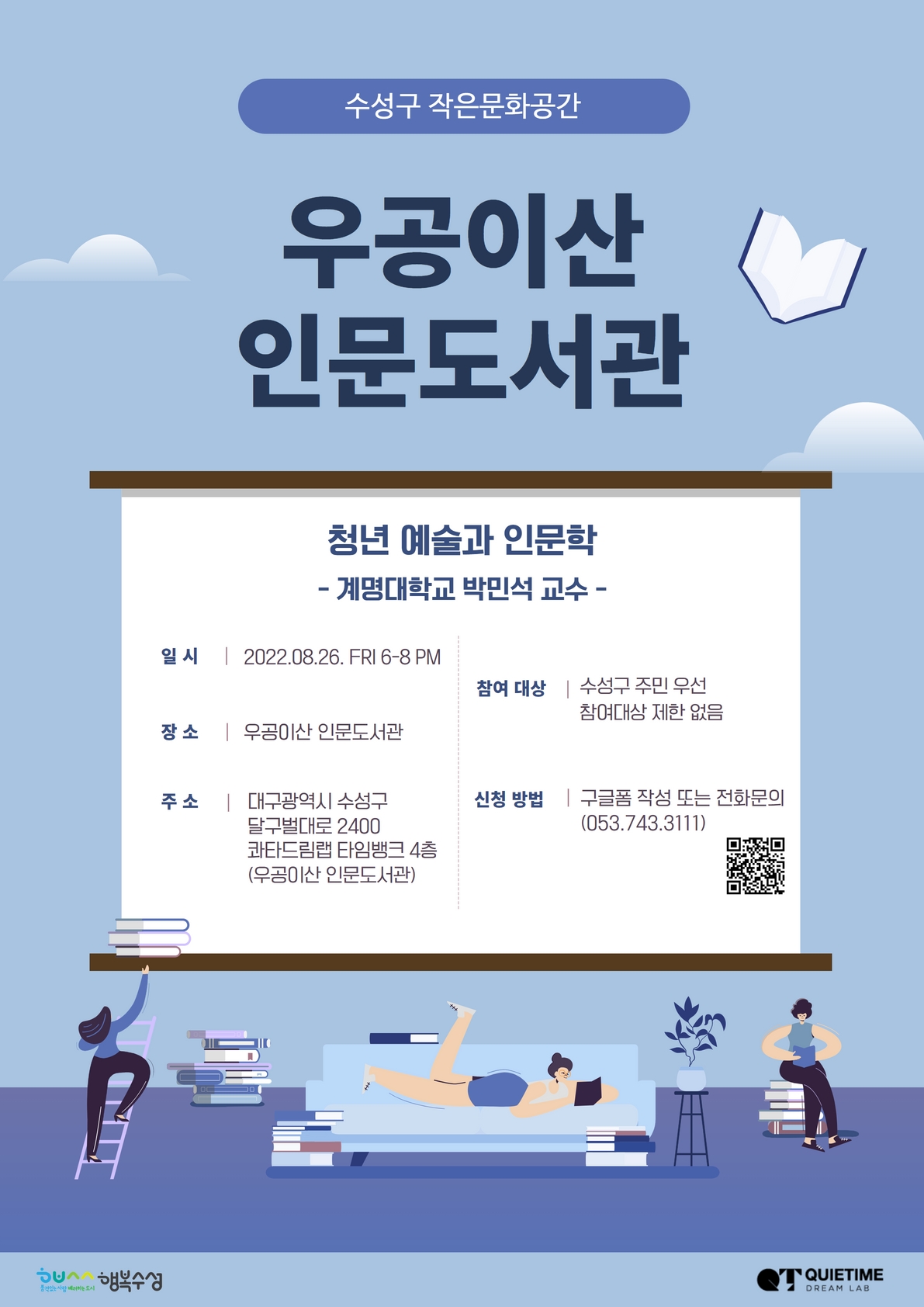 주소: 대구광역시 수성구 달구벌대로 2400, 콰타드림랩 타임뱅크 4층(우공이산 인문도서관)
