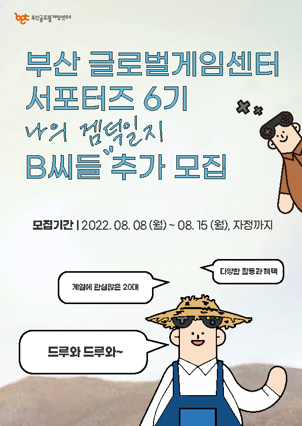 부산글로벌게임센터 서포터즈 6기 추가 모집을 진행하게 되었습니다!