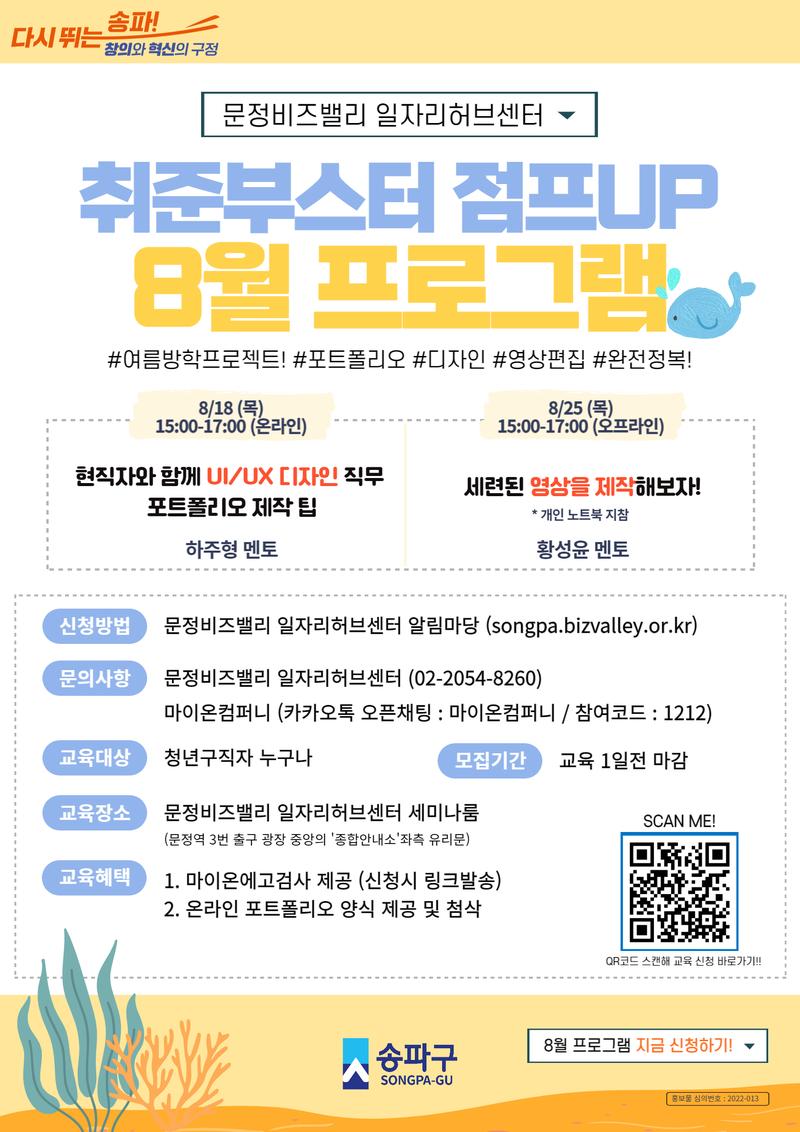 [송파구] ♬취준부스터 점프UP!♬ 8월 프로그램 안내