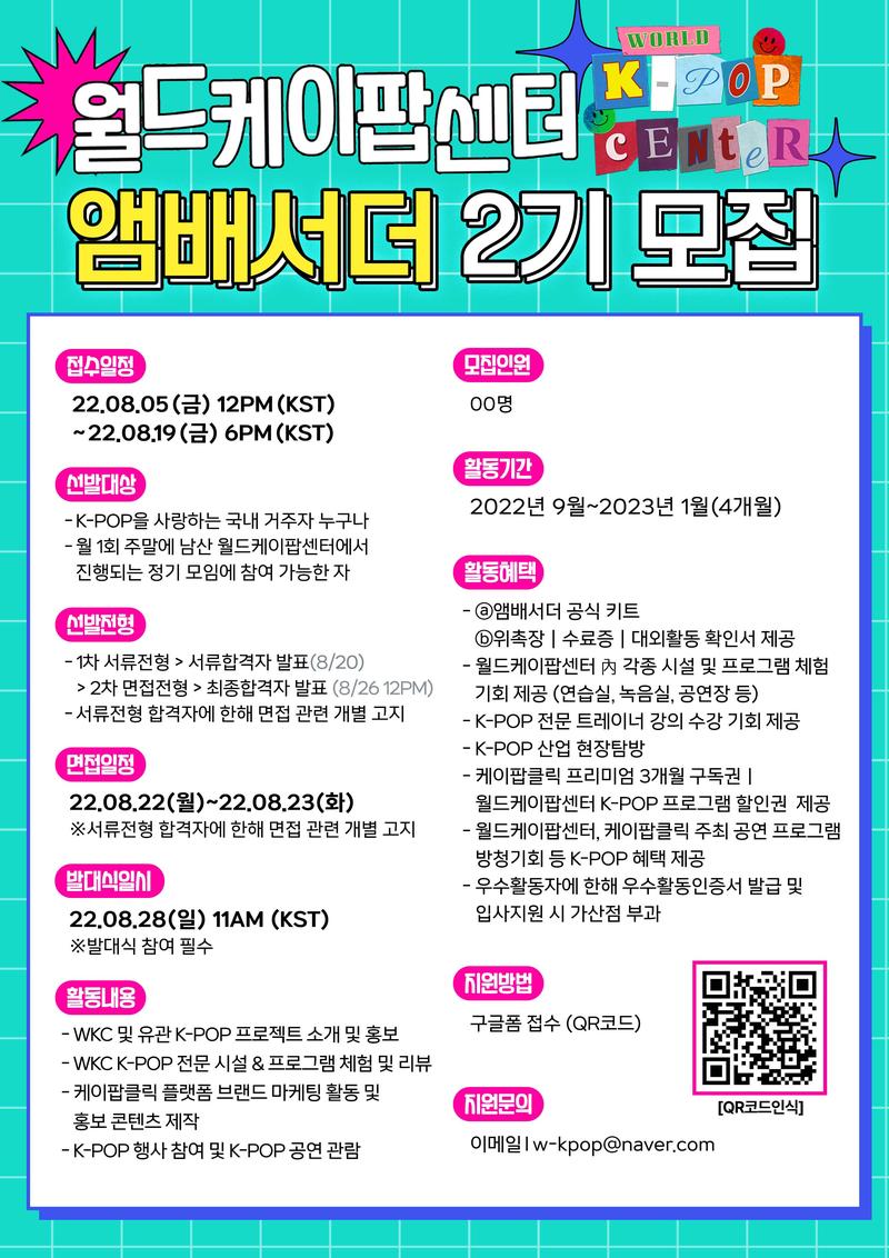 세계로 뻗어나가는 K-POP의 중심, 월드케이팝센터 앰배서더 2기를 모집합니다🙆♀️🙆♂️