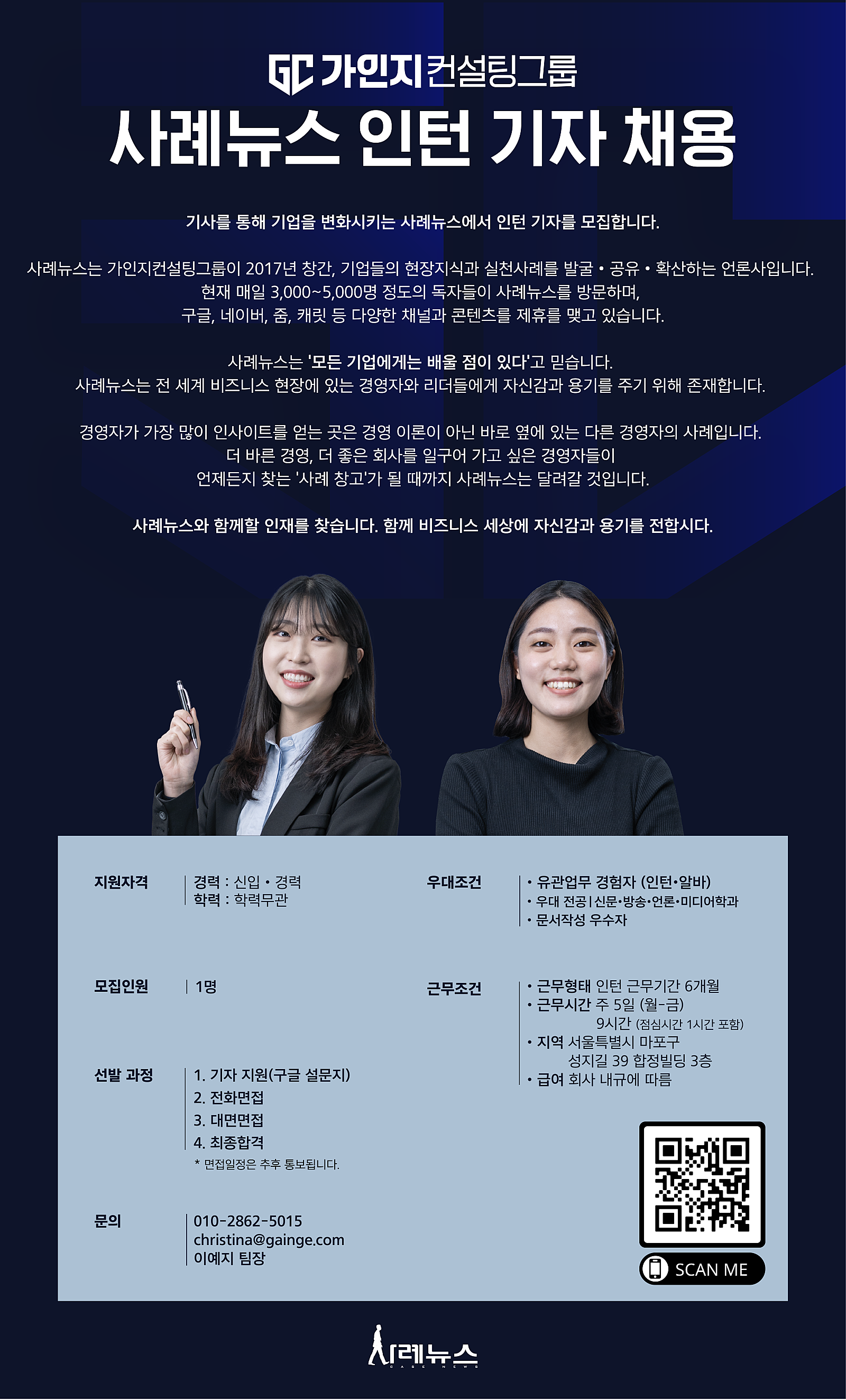 가인지컨설팅그룹 사례뉴스 인턴 기자 채용