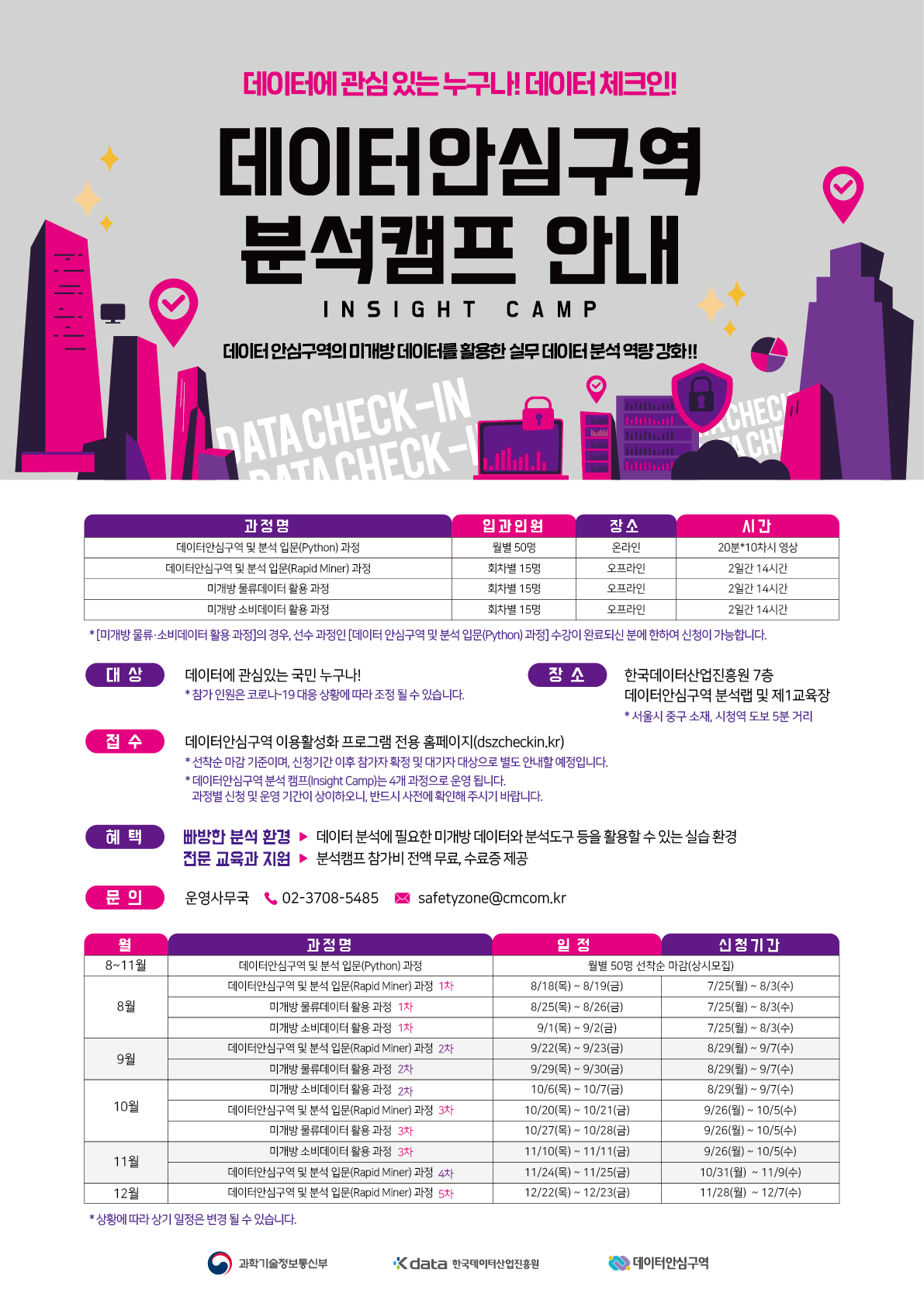 "데이터안심구역 분석 캠프(Insight Camp)" 를 개설하오니, 관심 있는 분들의 많은 신청 바랍니다.