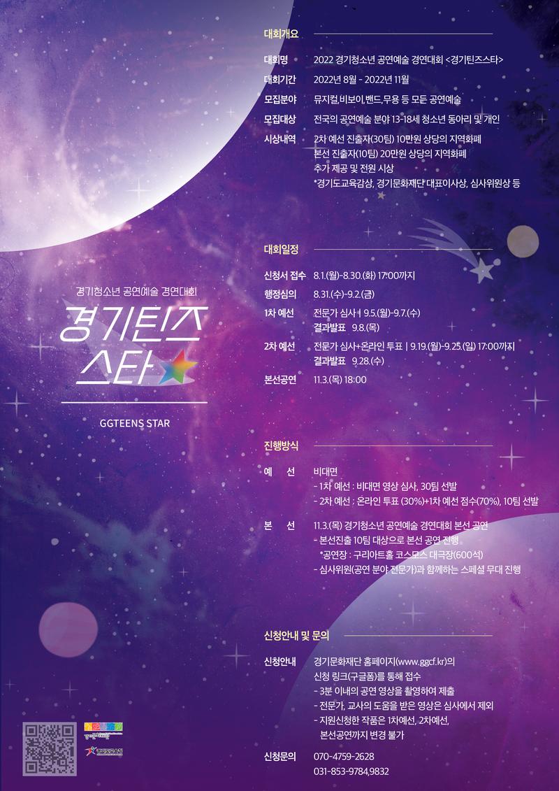 - 2022 경기청소년 공연예술 경연대회, 경기틴즈스타가 진행되니 많은 지원과 관심바랍니다.