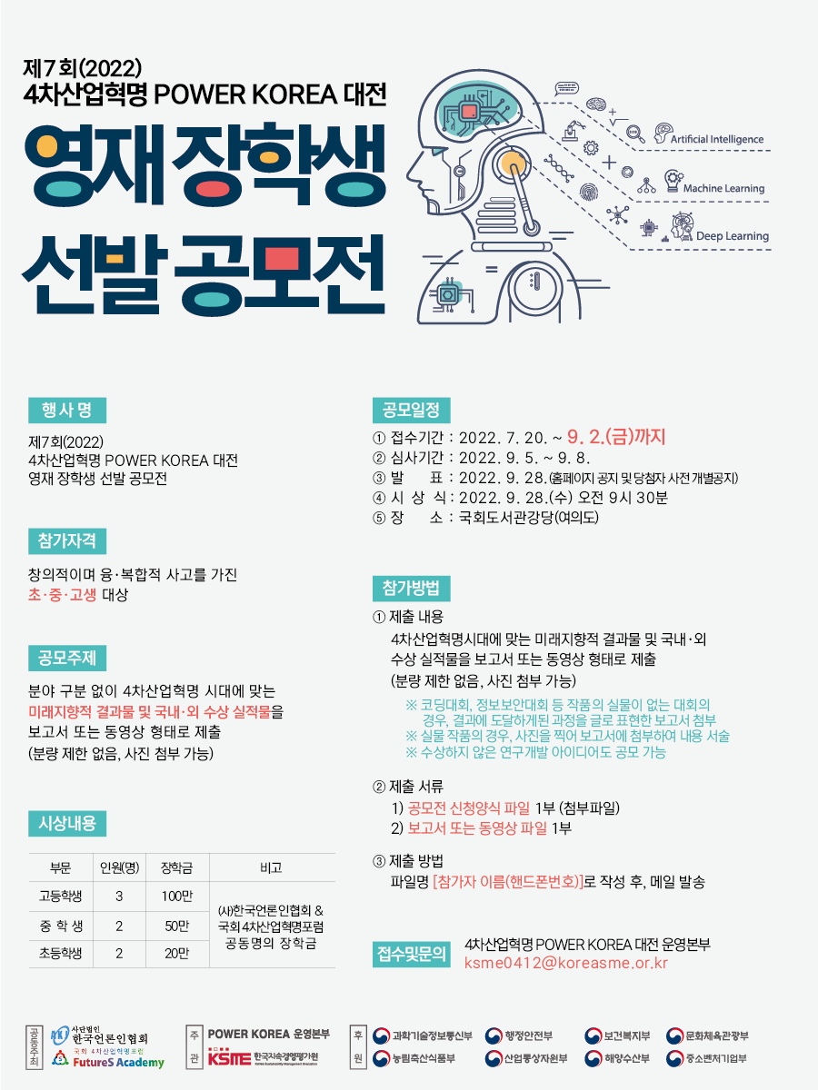 제7회(2022) 4차산업혁명 POWER KOREA 대전 영재 장학생 선발 공모전