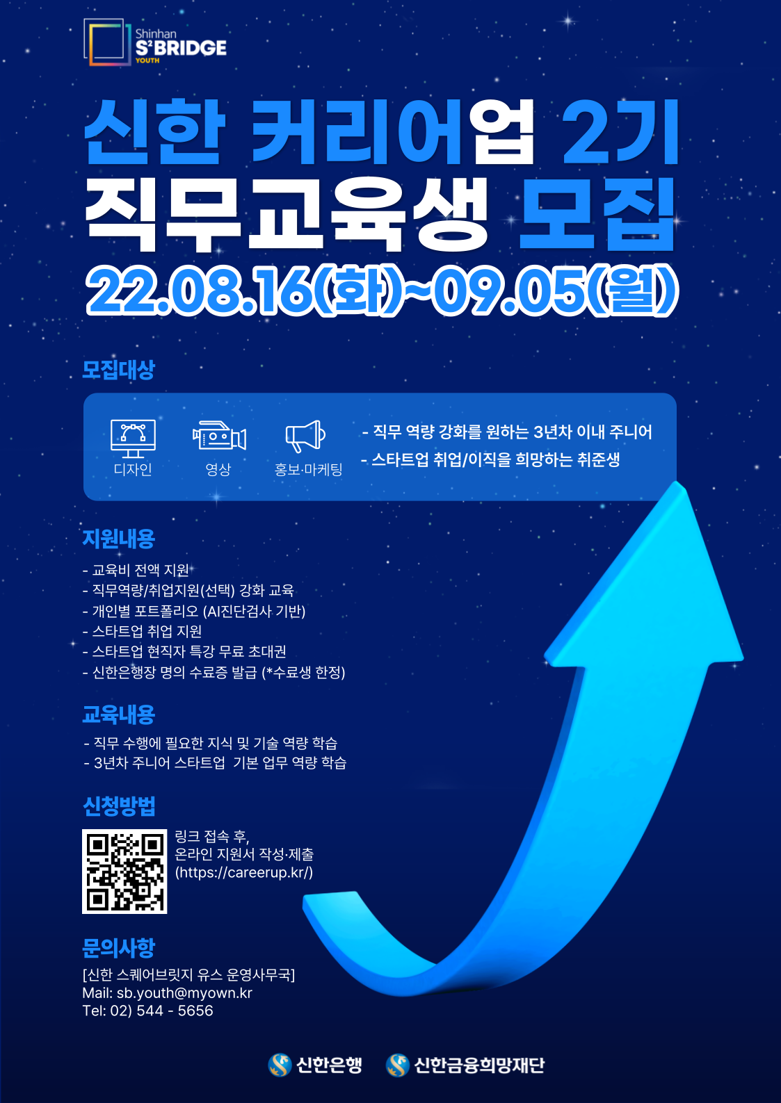 [신한 스퀘어브릿지:유스] 신한 커리어업 2기 직무교육생 모집 (~9/5)