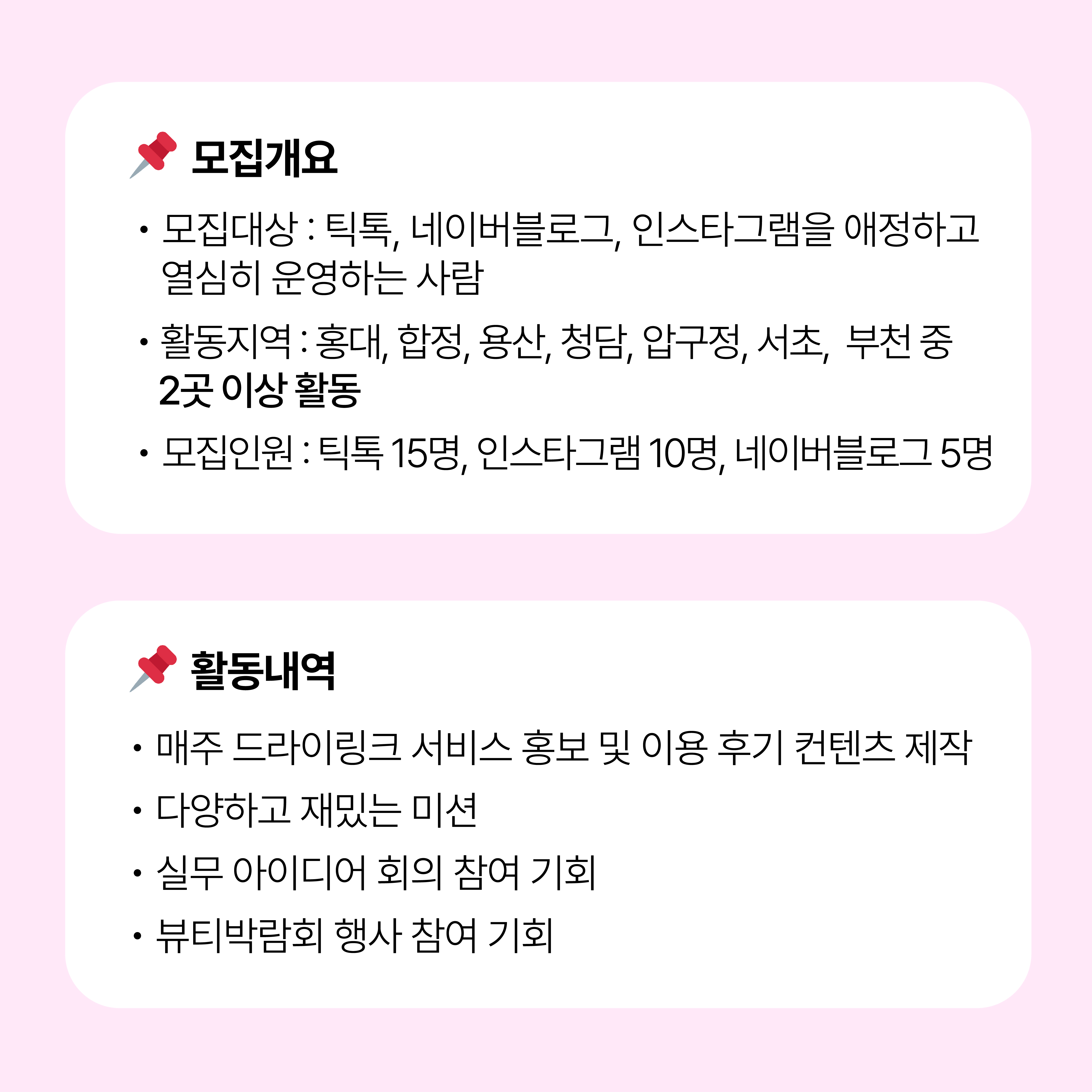 - 모집인원 : 틱톡 15명, 인스타그램 10명, 네이버블로그 5명