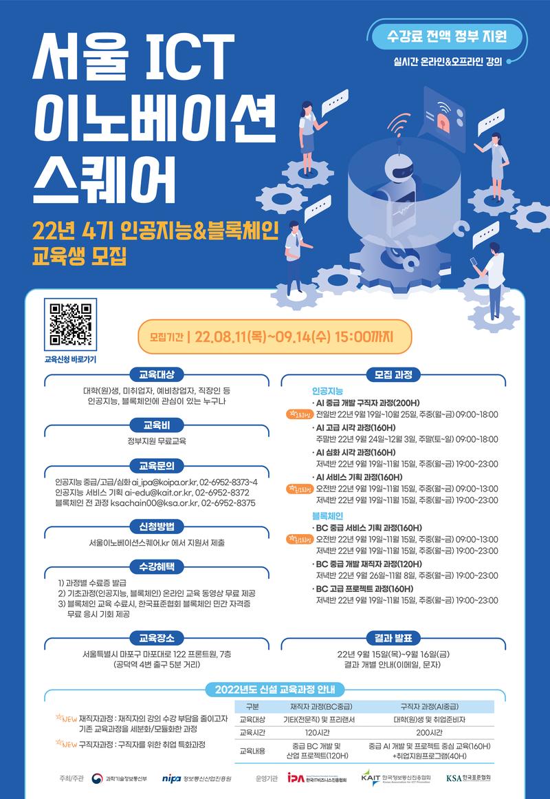 서울ICT이노베이션스퀘어에서 2022년 4기 교육생을 모집합니다.