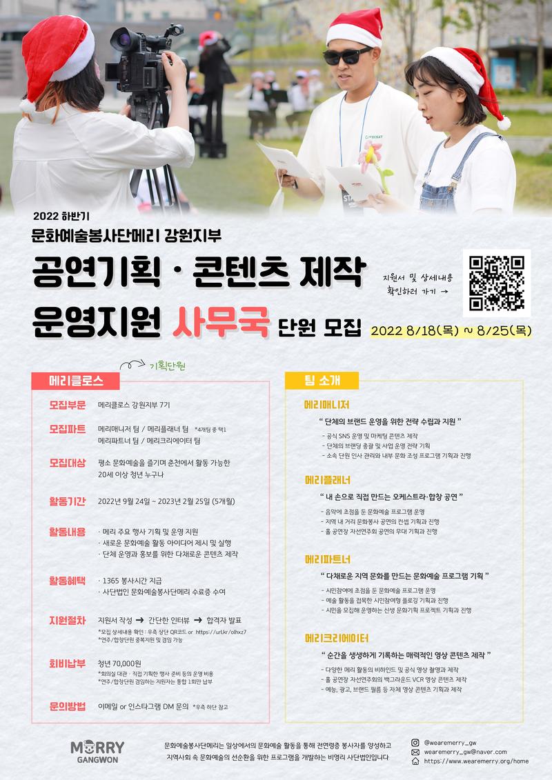 - 문화예술봉사단메리 강원지부 이메일 (wearemerry_gw@naver.com)