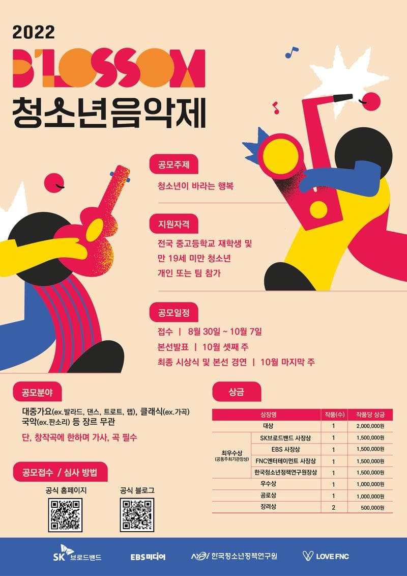 - 2022년 블러썸 청소년음악제가 진행되니 많은 지원과 관심바랍니다.