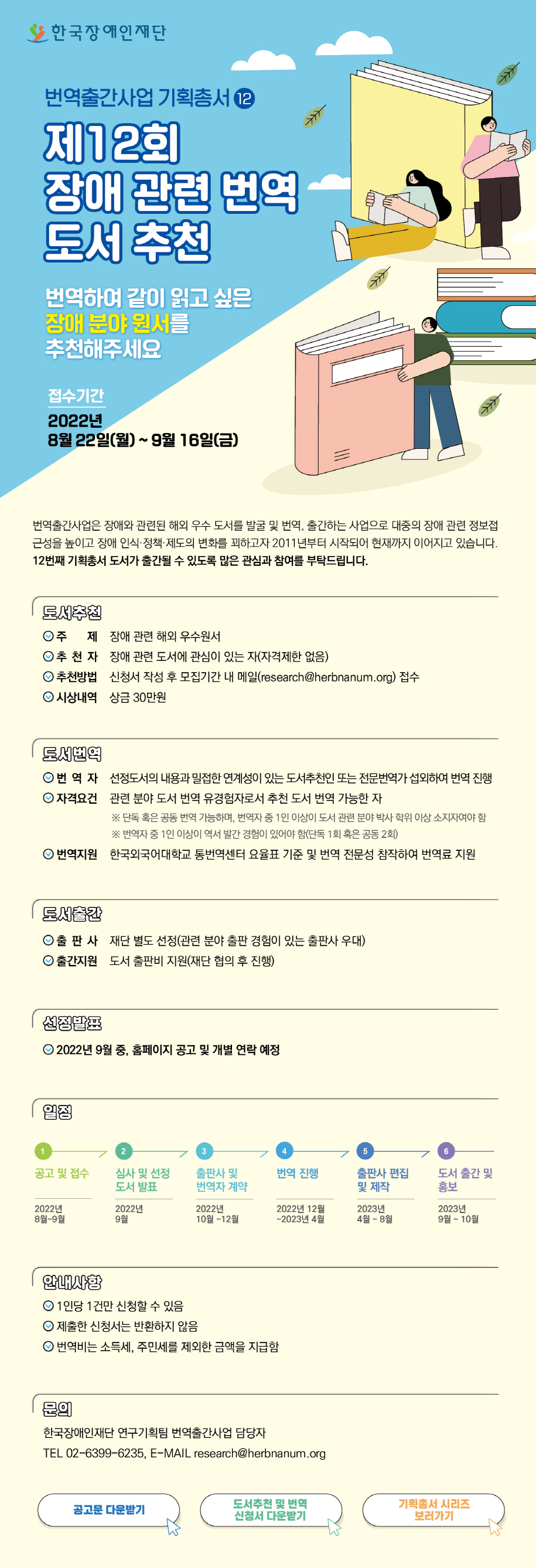 □ 문 의 : 한국장애인재단 연구기획팀(02-6399-6235, research@herbnanum.org)